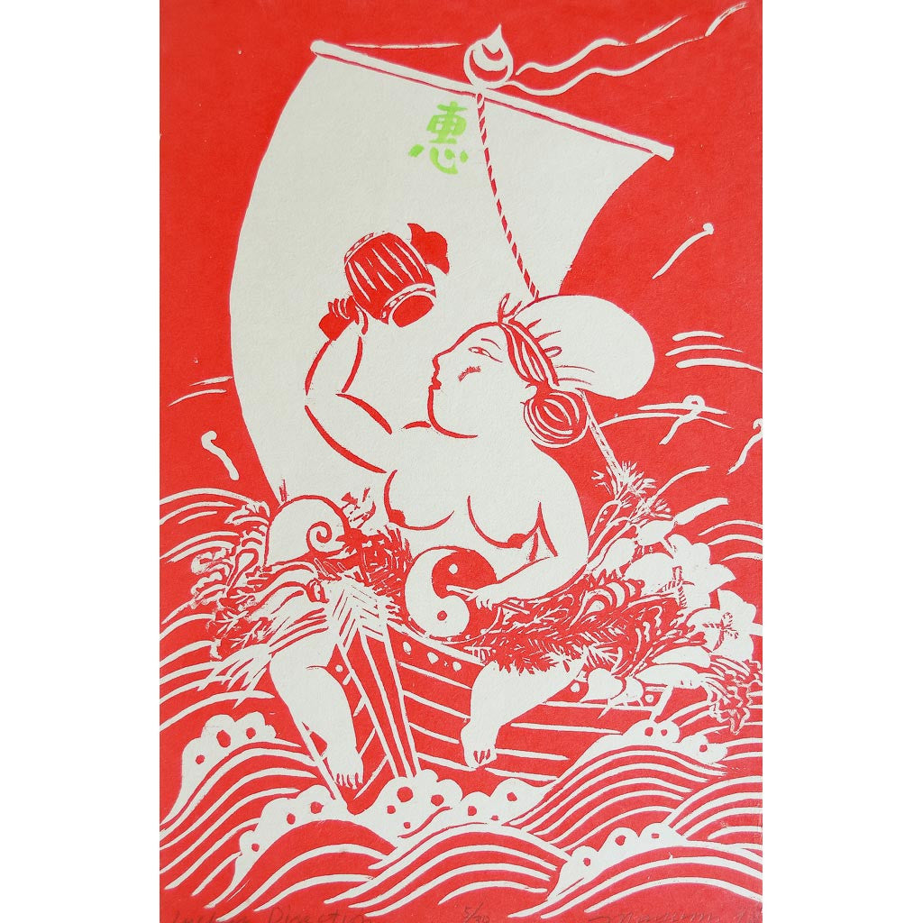 Ebisu: Goddess of the Sea. She rides on a red Thai fish